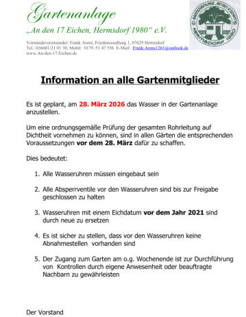 Aktuell freie Gärten: 1. Gartengröße 374 qm mit Fertigteilbau 19qm. Strom & Wasser vorhanden. 2. Gartengröße 348 qm, Massivbau ca. 24qm. Strom und Wasser ist vorhanden. 3. Gartengröße 352qm, Massivbau 24qm, Strom und Wasser vorhanden. 4. Gartengröße 438qm, Massivbau ca. 24qm, Strom und Wasser vorh. 5. Gartengröße 354qm, Massivbau 24qm teilunterkellert, Strom und Wasser vorhanden. 6. Garten - größe ca. 200qm, massiver Schuppen ca. 18qm, Kraftstrom und Wasser ist vorhanden. 7. Gartengröße 347qm mit Massivbau ca. 19qm, teilunterkellert. Strom und Wasser vorhanden.